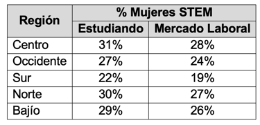 La participación de las mujeres en STEM varía considerablemente entre las diferentes regiones de México. A continuación, se presenta un desglose por región: