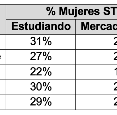 En México, la participación de las mujeres en carreras STEM es del 38%, según datos de AMIIF (AMIIF, 2021). Aunque este porcentaje ha aumentado en los últimos años, refleja una brecha de género significativa. Desde edades tempranas, solo un 9% de las niñas muestran interés en estas áreas, en comparación con un 28% de los niños (AMIIF, 2021). Esta brecha se traduce en una menor representación femenina en el mercado laboral STEM, donde solo 3 de cada 10 profesionistas son mujeres (IMCO, 2022).