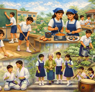 Desde temprana edad, se fomenta el respeto, el orden y la limpieza. En la escuela además de las actividades académicas, deportivas, artísticas o culturales los estudiantes participan diariamente en la limpieza de salones, pasillos y baños. Estos hábitos se transforman en valores que los acompañan durante toda la vida, guiando su desarrollo personal y profesional.